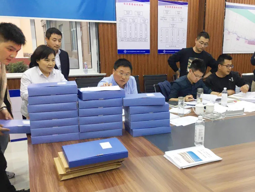 檢查組一行首先聽取了航道整治工程建設進展的工作匯報,隨后檢查了監理、施工單位的資料整理工作,并對目前的資料建檔規整進行了指導,指出了資料中存在的不足和需要完善的部分。