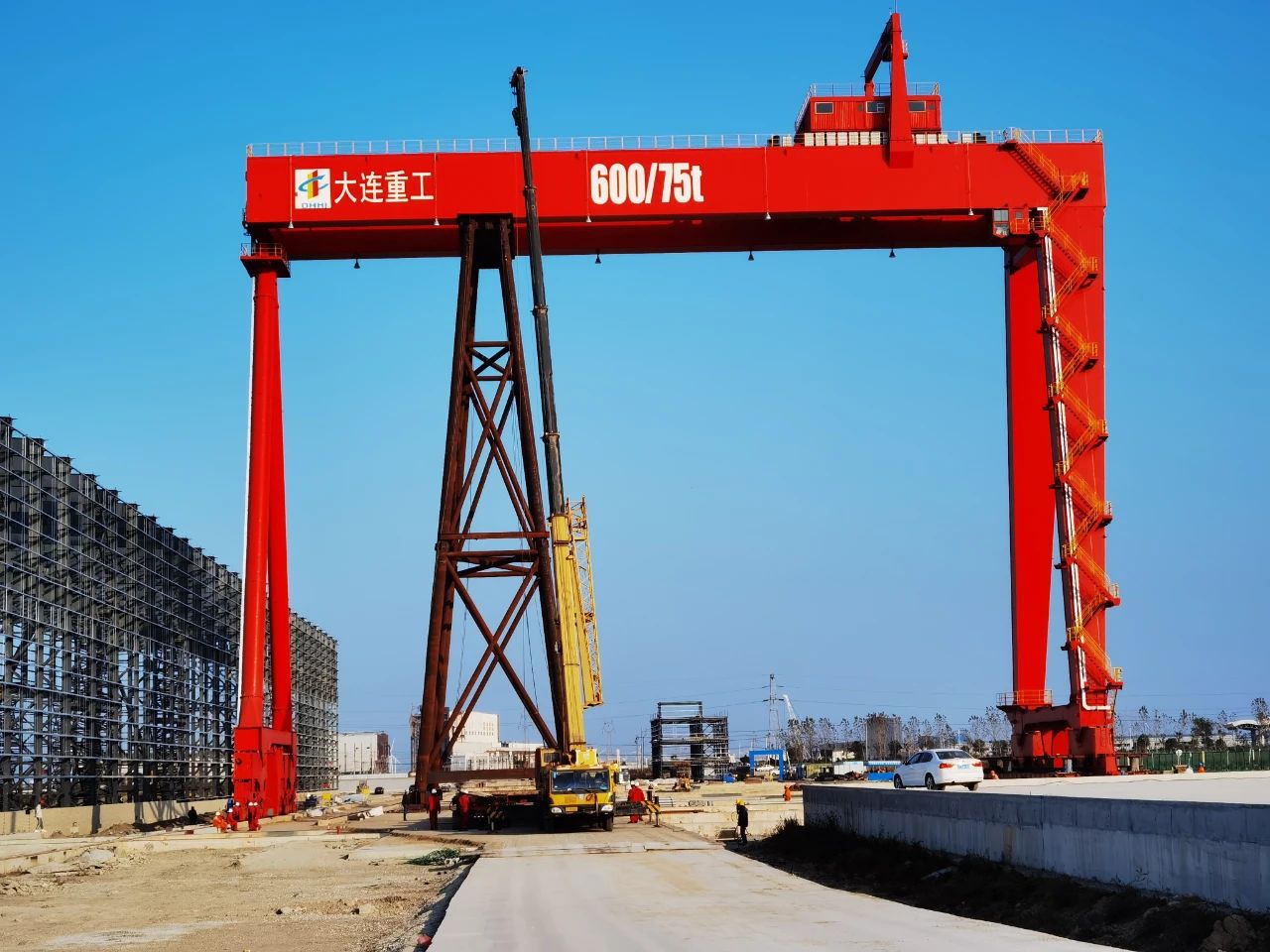滾裝過程中,嚴格做好人員和設備安全措施,密切關注潮汐變化,確保指揮通暢,指令清晰,嚴密配合,下午4時30分龍門吊成功到達指定位置,圓滿完成安裝任務。