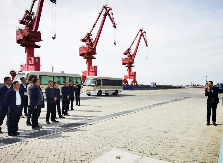 會前,與會人員實地察看了射陽港區3.5萬噸級通用碼頭、射陽港聯檢業務中心建設現場,詳細了解相關情況。