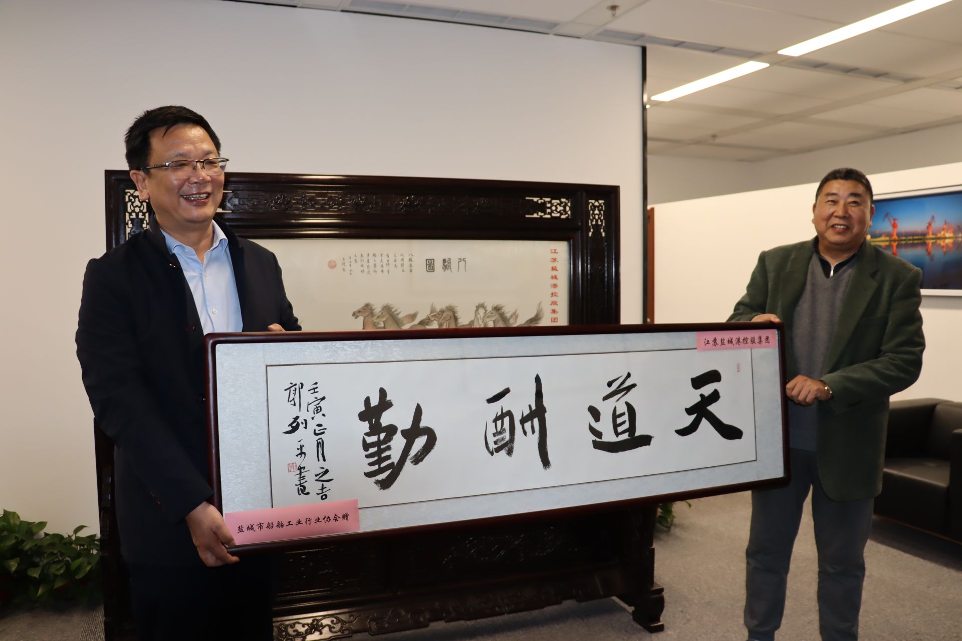 3月10日下午,鹽城市交通運輸局、市交通運輸綜合行政執法支隊、市綜合交通學會和市船舶工業行業協會來到鹽城港控股集團進行授匾調研洽談,在集疏運體系建設與發展、一線員工安全技能培訓及船舶設計與制造等事宜雙方達成共識。集團黨委書記、董事長、總經理周正雄和集團黨委委員、董事、副總經理夏立新及市綜合交通學會副理事長潘進山、市地方海事局原局長周炳學共同為授匾揭幕。