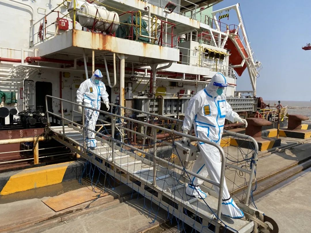鹽城海岸線長(zhǎng)達(dá)582公里,占江蘇省海岸線總長(zhǎng)度比重高達(dá)56%,鹽城港共有“一港四區(qū)”,即大豐港區(qū)、濱海港區(qū)、射陽港區(qū)和響水港區(qū),點(diǎn)多面廣。有一群人默默在這些口岸間來回穿梭,對(duì)入境船舶實(shí)施登臨檢疫,筑牢口岸檢疫防線,他們就是鹽城海關(guān)疫情防控水運(yùn)專班的成員。