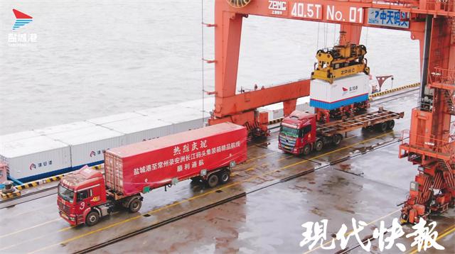 常州錄安洲長江碼頭有限公司相關負責人表示,鹽城港至常州錄安洲長江碼頭精品集裝箱航線順利通航,標志著運河與長江的聯動發展,助推鹽城常州兩座城市的經濟快速發展,為國內國際雙循環的高速運轉提供強有力的港口引擎。