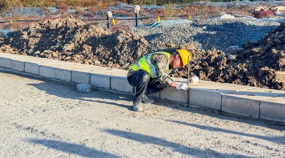 工人們正進(jìn)行混凝土面層收尾作業(yè)