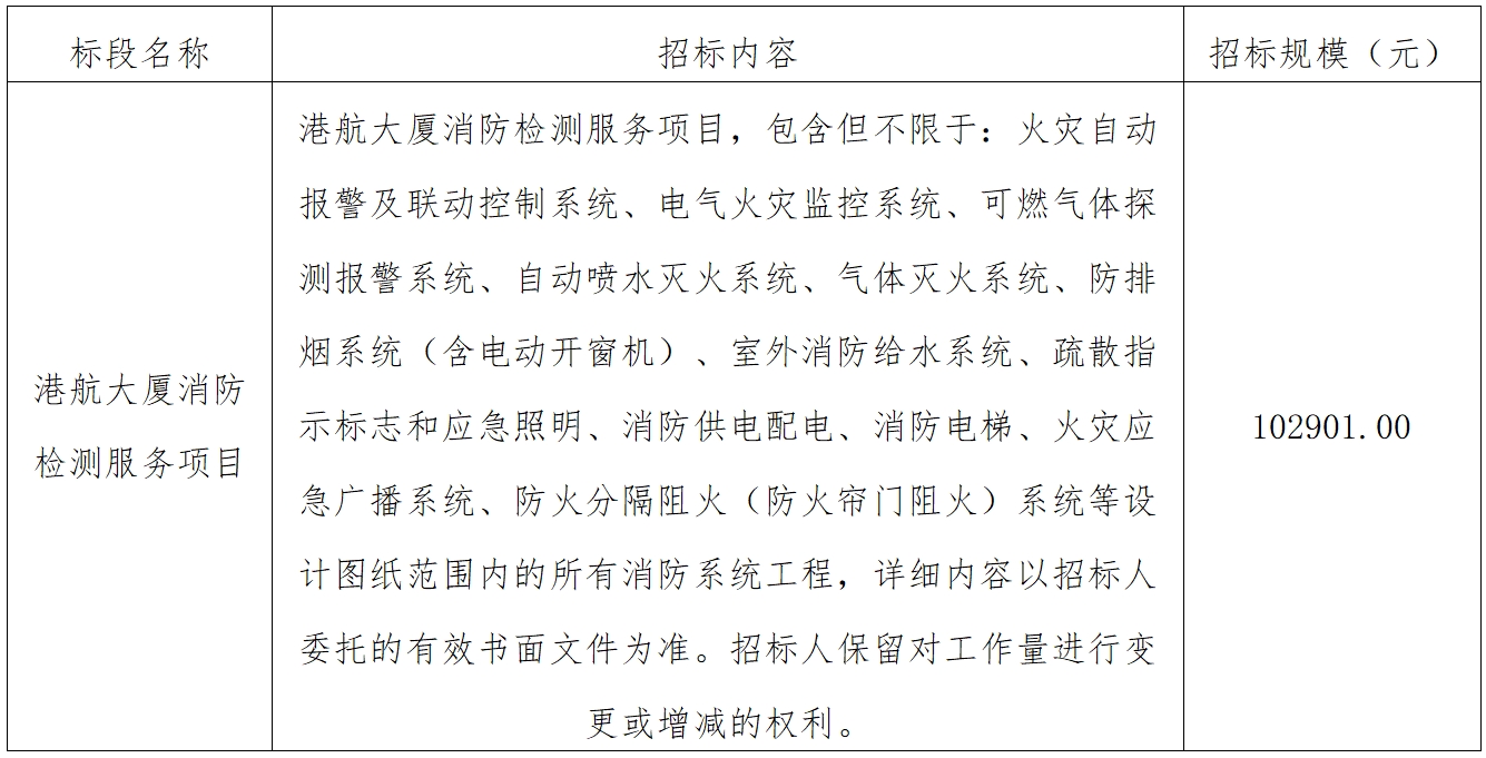 一、江蘇鹽城港控股集團有限公司負責實施的港航大廈消防檢測服務項目已具備招標條件,項目所需資金已落實,現(xiàn)通過公開招標方式邀請潛在投標人參加本項目的投標。