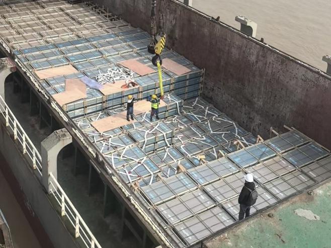 精密貨種精細(xì)接卸,全流程管控彰顯實(shí)力。光伏玻璃作為易損精密貨種,對裝卸、轉(zhuǎn)運(yùn)過程的穩(wěn)定性與精準(zhǔn)度要求極為嚴(yán)苛。面對挑戰(zhàn),港區(qū)一線生產(chǎn)班組提前開展專項(xiàng)培訓(xùn),針對光伏玻璃特性優(yōu)化吊具與工屬具配置,嚴(yán)格制定精細(xì)化作業(yè)流程。作業(yè)過程中,操作人員精準(zhǔn)控制每個(gè)環(huán)節(jié),采用軟性襯墊、平穩(wěn)起吊、緩慢移動(dòng)等專業(yè)措施,有效保障了貨物完好無損接卸,充分展現(xiàn)了射陽港在精密貨種作業(yè)領(lǐng)域的專業(yè)能力。