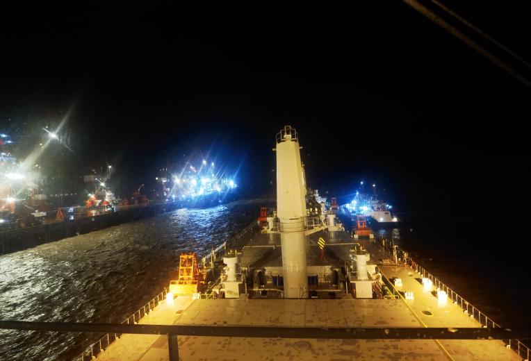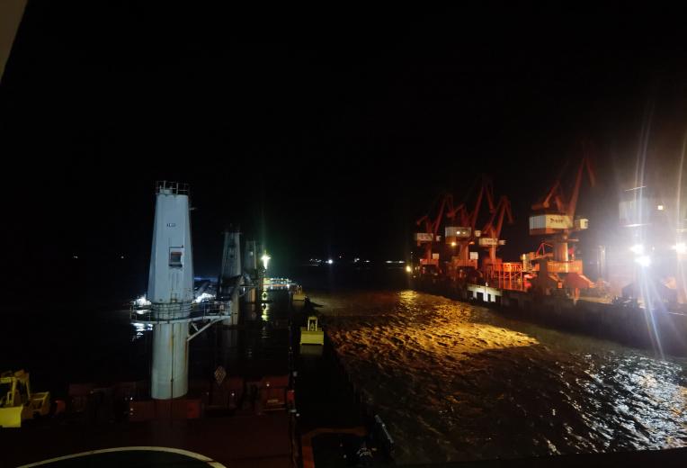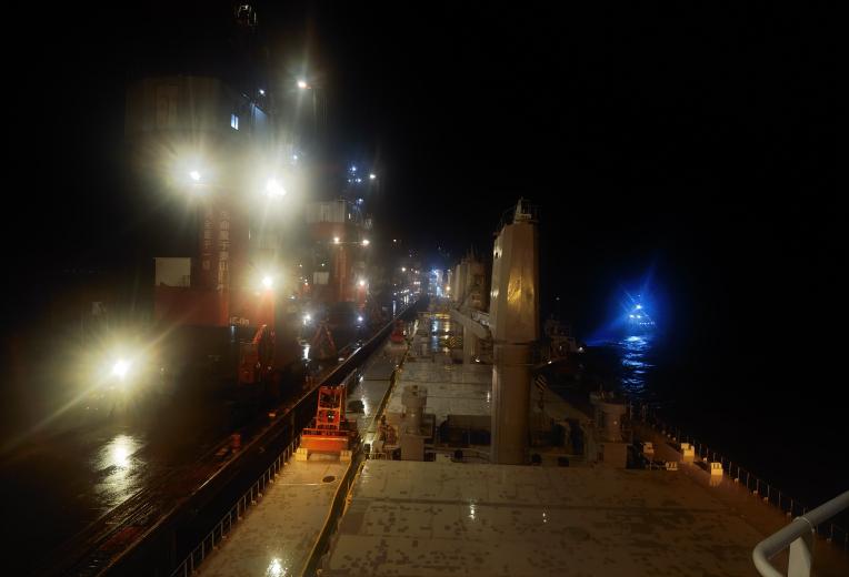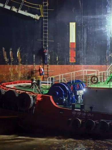 近日為給凌晨到港的利比里亞籍“環球賢者”輪騰出寶貴靠泊窗口,引航站深夜奔赴港口一線登上馬耳他籍“米拉”輪,開啟了一場與時間賽跑的夜間作業。