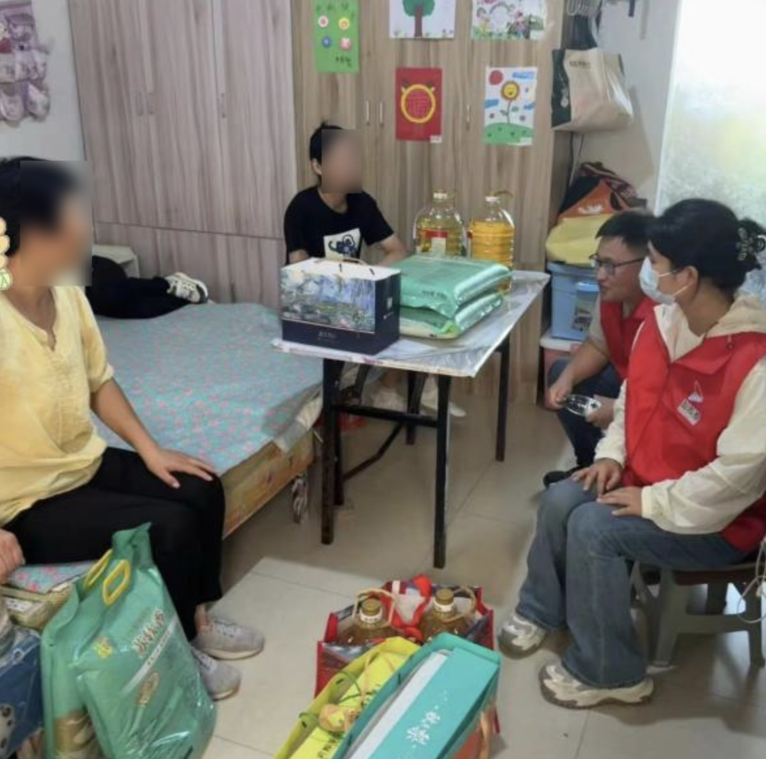 志愿者首先來到大豐區(qū)殘聯(lián)殘疾人綜合服務(wù)中心,工作人員耐心細致地為他們介紹慰問對象的基本情況。隨后,志愿者集中前往慰問對象家中,為孩子與他的家人送去月餅和生活必需品,并與他們圍坐一起,展開親切而深入的交流。志愿者耐心傾聽每一個家庭的故事,無論是孩子們學(xué)習(xí)上的小進步,還是生活中遇到的點滴困難,都成為了彼此間情感交流的橋梁。他們鼓勵孩子們勇敢追夢,面對挑戰(zhàn)時保持樂觀與堅韌;同時,積極與家長溝通,旨在助力他們在孩子的日常成長道路上成為更加貼心與智慧的引路人。