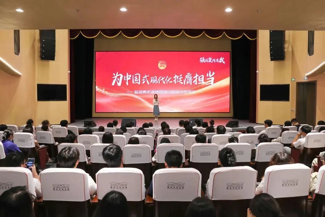 在線路第三站鐵軍劇場,5位來自不同領(lǐng)域的青年講師為青年學(xué)員帶來了一場內(nèi)容豐富、形式多樣的精神盛宴。江蘇省金牌講解員陳風(fēng)亮老師深情講述了“一塊石頭的故事”,以小見大,折射出新四軍帶領(lǐng)鹽阜人民修筑海堤、抵御海潮的感人事跡;建湖縣淮劇團(tuán)青年演員夏詩雅老師分享了她的藝術(shù)成長歷程以及淮劇創(chuàng)新表演方式,引導(dǎo)青年在藝術(shù)熏陶中感悟紅色基因的深厚底蘊(yùn);青年志愿者馬量則結(jié)合自身志愿服務(wù)經(jīng)歷,呼吁大家立足本職崗位,弘揚(yáng)奉獻(xiàn)精神,積極服務(wù)社會(huì)。來自水務(wù)公司和鹽城機(jī)場的青年講師也結(jié)合自身崗位分別做了分享。