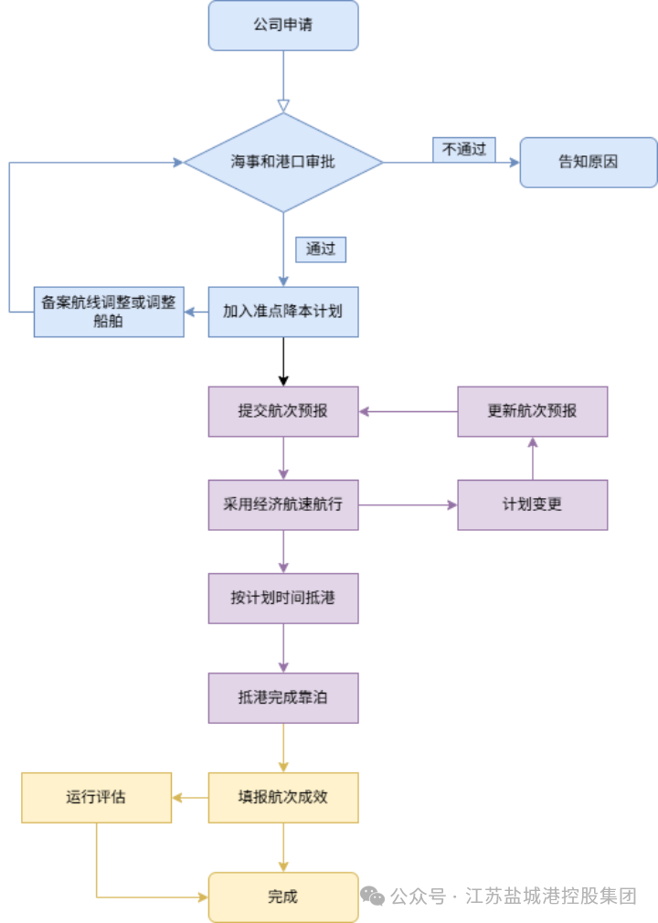 2.評估確認:直屬海事局歸口業務部門牽頭召集港口、航運公司對航線運行情況、船舶安全狀況、公司管理水平、港口保障能力等進行會商評估。會商同意的,直屬海事局歸口業務部門和港口在智慧海事監管系統“準點降本”模塊以及外網端對航線備案進行確認,標志著該航線正式加入計劃。