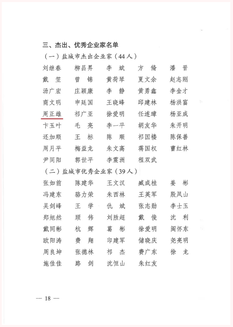 2月7日,春節(jié)后上班第一天,從全市勇當沿海地區(qū)高質量發(fā)展排頭兵推進會暨2021年度綜合考核表彰大會上傳來好消息,集團榮獲2021年度“爭星創(chuàng)優(yōu)”活動“服務業(yè)五星企業(yè)”榮譽稱號,集團黨委書記、董事長、總經理周正雄榮獲“鹽城市杰出企業(yè)家”榮譽稱號。