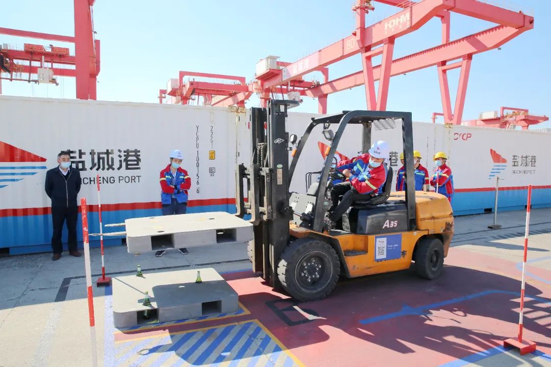 本次技能大賽由市交通運輸局、市總工會、市人力資源和社會保障局聯合舉辦,由鹽城港集團承辦,大賽共設置理論知識考試和技能操作考核兩部分。來自響水港區、射陽港區、陸港集團、港口公司、航運集團等19名叉車能手參加。