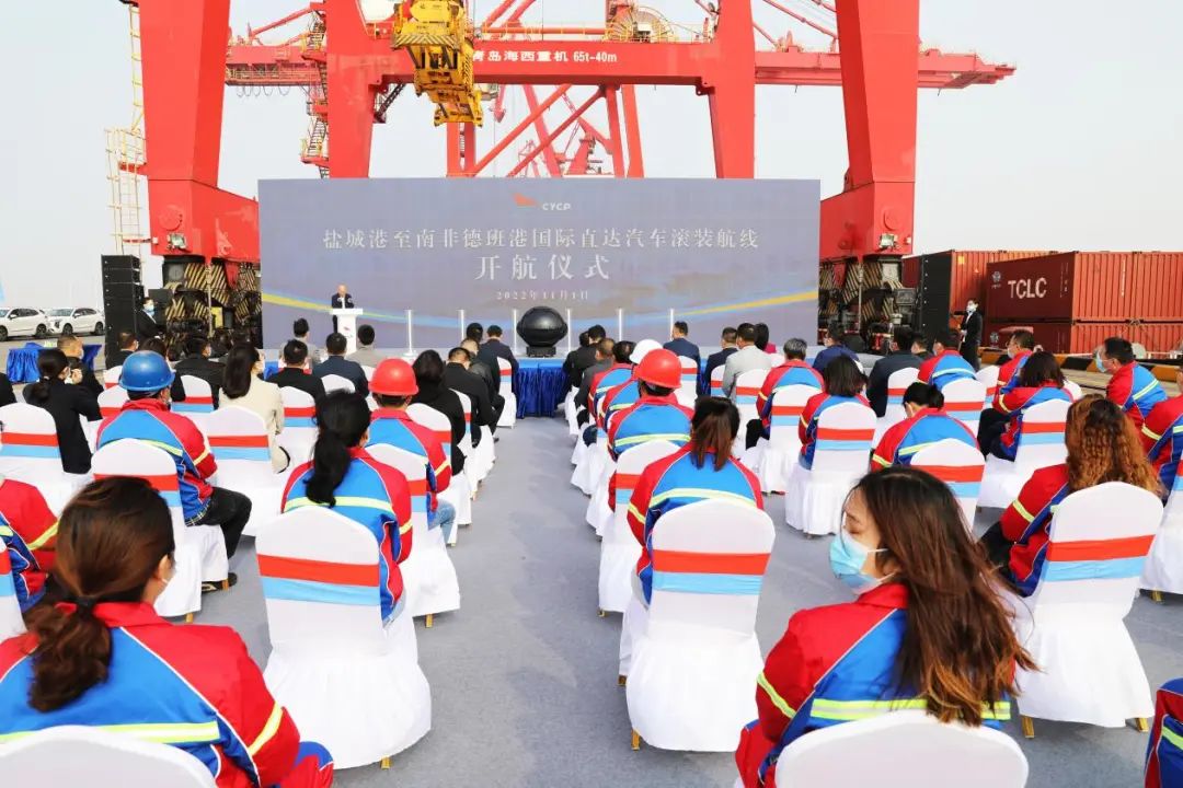 滾裝碼頭是鹽城港打造區(qū)域綜合性樞紐港的重要組成部分,承載鹽城汽車出口和活牛進境等口岸功能。集團成立以來,持續(xù)在發(fā)揮現有港口碼頭能級最大效益上發(fā)力,去年順利推進滾裝碼頭對外開放通過省級驗收。今年5月,國務院辦公廳發(fā)布《關于推動外貿保穩(wěn)提質的意見》,指出要鼓勵創(chuàng)新、綠色、高附加值產品開拓國際市場,支持國外消費者購買中國品牌汽車;7月,國家商務部等17個部委聯合發(fā)布《關于搞活汽車流通擴大汽車消費若干措施的通知》,滾裝碼頭的發(fā)展迎來了新的契機。面對新形勢,集團黨委深入識勢、精準看勢、主動應勢,充分利用現有滾裝碼頭及船舶、汽車堆場等優(yōu)質資源,積極與長城汽車、北京華圖等業(yè)內知名汽車制造企業(yè)、物流代表合作,開通鹽城港至南非地區(qū)外貿汽車滾裝航線。今天航線的正式開通,將進一步加深鹽城與“一帶一路”沿線國家特別是與非洲國家的經貿合作,為高質量推進“一帶一路”交匯點建設提供堅實的物流通道支撐。