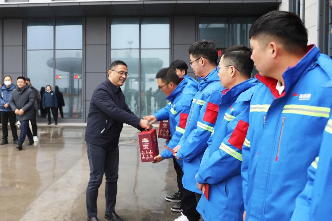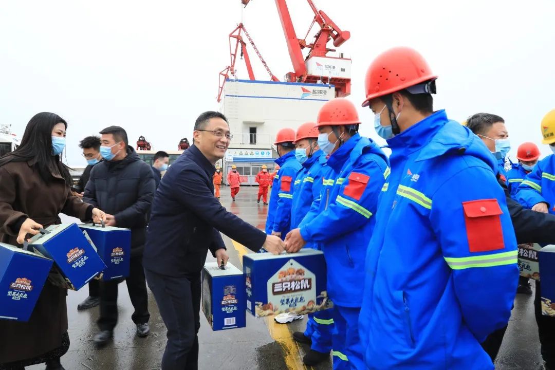 1月22日,大年初一,碼頭一線到處洋溢著節(jié)日喜慶氣氛。受集團(tuán)黨委、董事會委托,當(dāng)天上午,集團(tuán)黨委副書記、董事、總經(jīng)理陸帥率隊(duì)前往大豐港區(qū)看望慰問堅(jiān)守在一線工作崗位的工作人員,代表集團(tuán)黨委、董事會向他們致以新春的祝福和節(jié)日的問候。鹽城海關(guān)二級高級主辦李健,集團(tuán)副總經(jīng)理袁欣等參加。