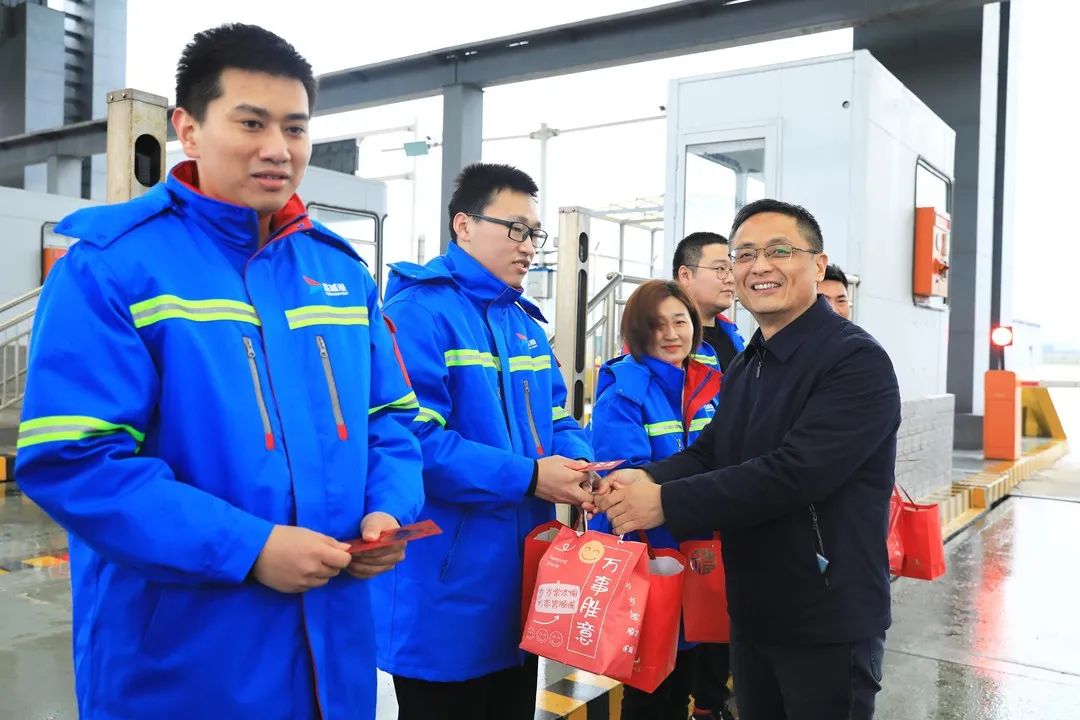 鹽城港港口公司2022年的貨物吞吐量再創(chuàng)歷史新高,為集團(tuán)實(shí)現(xiàn)兩年翻番的目標(biāo)作出了重要貢獻(xiàn)。在港口公司糧食碼頭,陸帥和堅(jiān)守崗位的工作人員一一握手,感謝大家的默默奉獻(xiàn)以及為保障港口安全平穩(wěn)運(yùn)行而付出的努力。他希望港口公司全體干部職工在2023年繼續(xù)以黨的二十大精神為指引,深入貫徹落實(shí)集團(tuán)黨委一屆三次全體(擴(kuò)大)會議部署要求,進(jìn)一步提高政治站位,扎實(shí)履行好崗位職責(zé),繼續(xù)發(fā)揚(yáng)能吃苦、能戰(zhàn)斗、能奉獻(xiàn)、敢擔(dān)當(dāng)?shù)膬?yōu)良作風(fēng),更加堅(jiān)定目標(biāo)信心,抓實(shí)抓牢碼頭生產(chǎn)經(jīng)營各項(xiàng)工作,為集團(tuán)高質(zhì)量融合發(fā)展再創(chuàng)佳績、再立新功。