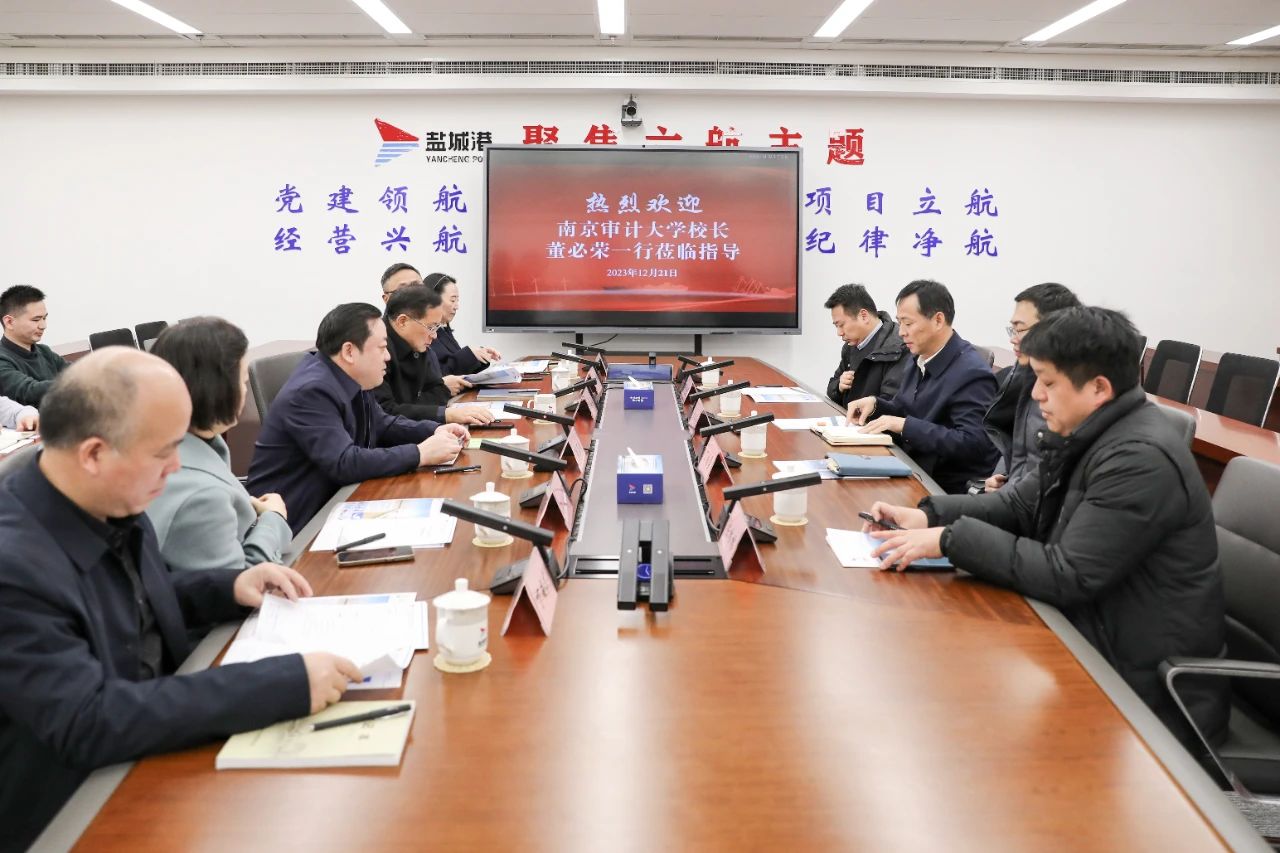周正雄對董必榮一行的到來表示歡迎,并介紹了鹽城港相關(guān)情況。他說,港口作為沿海發(fā)展的重要增長極,2020年市委、市政府審時(shí)度勢,將全市海港和內(nèi)河港區(qū)融為一體,組建成立鹽城港集團(tuán)。三年來,集團(tuán)聚焦改革發(fā)展、生產(chǎn)運(yùn)營、問題處置、風(fēng)險(xiǎn)防控等方面,扎實(shí)推進(jìn)整合、磨合、融合各項(xiàng)工作,實(shí)現(xiàn)了“三年三大步”的發(fā)展成效。與此同時(shí),集團(tuán)仍面臨著諸多問題與不足,懇請南京審計(jì)大學(xué)能夠在財(cái)務(wù)、審計(jì)、法務(wù)、融資專業(yè)人才培養(yǎng)等方面給予鹽城港更多支持,全面深化校企合作“試點(diǎn)”創(chuàng)新,為鹽城港的健康可持續(xù)發(fā)展保駕護(hù)航。