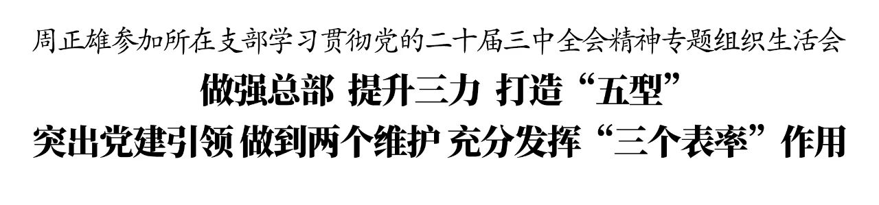 8月14日,集團機關第一黨支部召開學習貫徹黨的二十屆三中全會精神專題組織生活會,集中學習習近平總書記關于推動機關黨建高質量發展作出的重要指示精神。集團黨委書記、董事長周正雄以普通黨員身份參加會議。