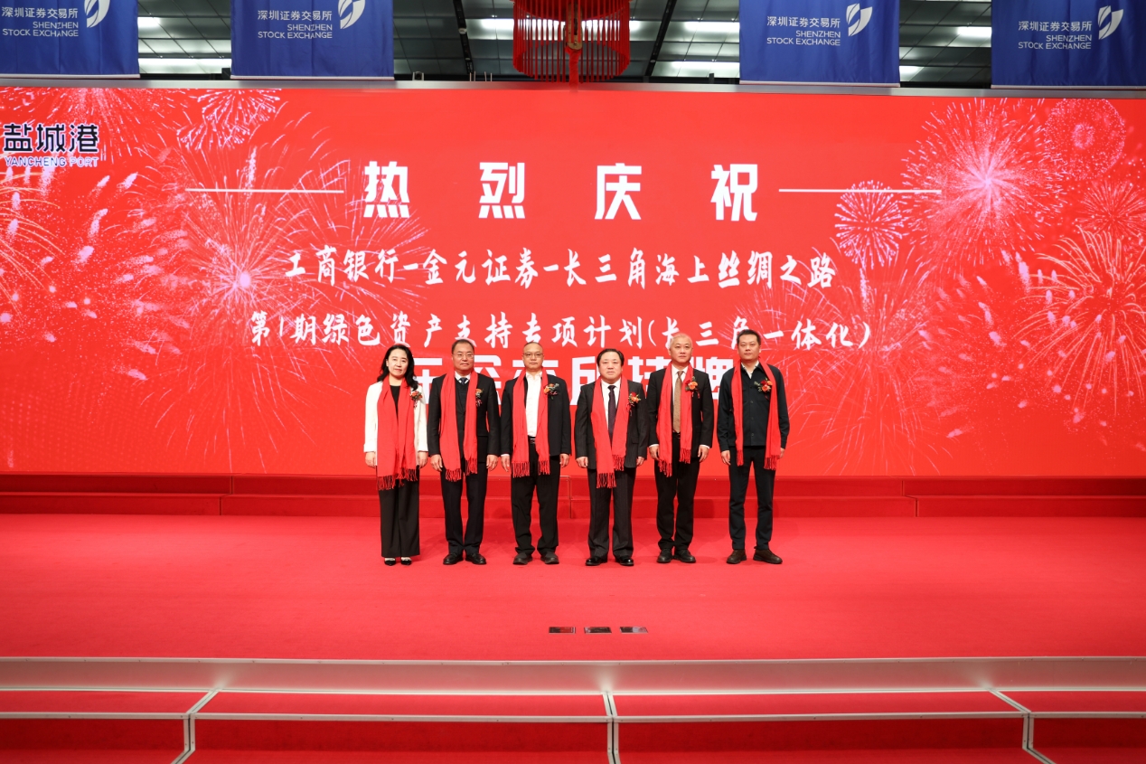 12月23日,全國首單綠色港口收費收益權ABS“工商銀行-金元證券-長三角海上絲綢之路第1期綠色資產支持專項計劃(長三角一體化)”在深圳證券交易所成功掛牌。集團黨委書記、董事長周正雄,金元證券黨委書記、董事長陸濤出席活動并分別致辭。中投保公司黨委書記、董事長鄧星斌,工商銀行江蘇省分行投資銀行部總經理陳杰,集團副總經理袁欣,金元證券副總裁田原等參加。