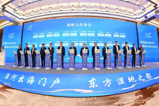 10月29日,在淮河生態經濟帶城市合作第5次市長會商會上,集團黨委書記、董事長周正雄代表集團與江蘇徐州港務(集團)有限公司、蚌埠港國際集裝箱碼頭有限公司等13家淮河沿線港口、物流企業集中簽署戰略合作協議,共同打造“黃金水道”,共享“淮河出海門戶港”區位優勢。