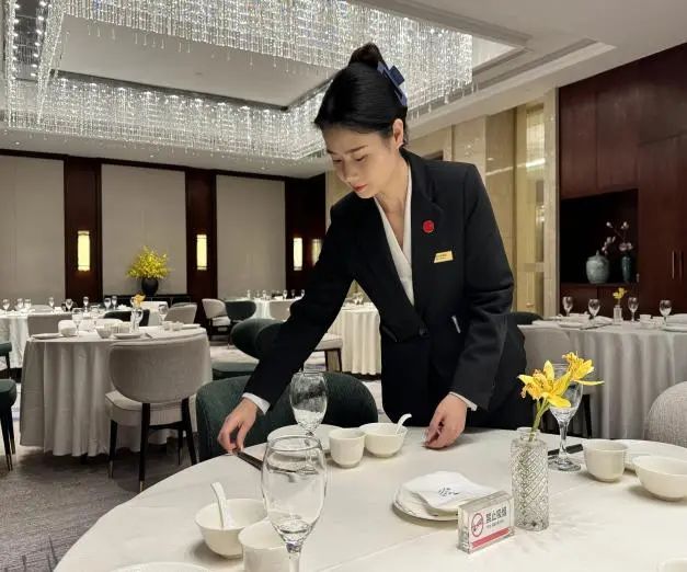 在鹽城港半島溫泉酒店,總能看到一個(gè)身影穿梭在中餐廳的各個(gè)角落。她時(shí)而彎腰檢查餐具擺放的角度,時(shí)而蹲下整理桌布的褶皺,每一個(gè)細(xì)節(jié)都逃不過她專注的目光。她就是張曉芳,一個(gè)用三年時(shí)間從普通服務(wù)員成長(zhǎng)為獨(dú)當(dāng)一面的中餐廳副經(jīng)理的“95后”姑娘。