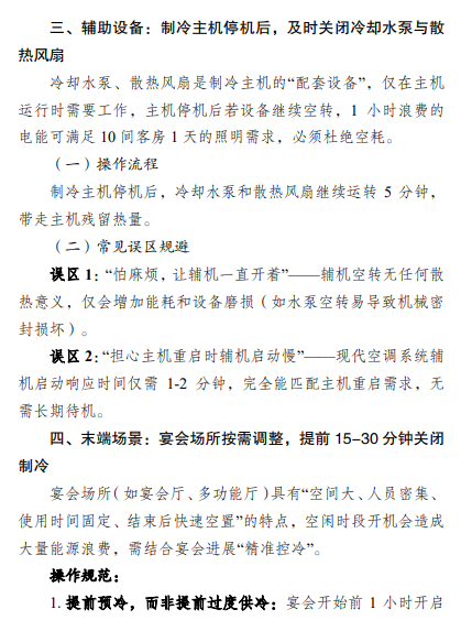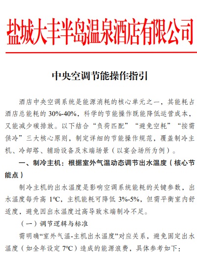 酒店專門編制空調(diào)節(jié)能操作指南,圍繞“負荷匹配、避免空耗、按需供冷”三大原則,通過靈活調(diào)節(jié)水溫、分時運行風(fēng)機、合理預(yù)判宴會需求等方式,從設(shè)備運行到場景適配全流程優(yōu)化,節(jié)電效果顯著。