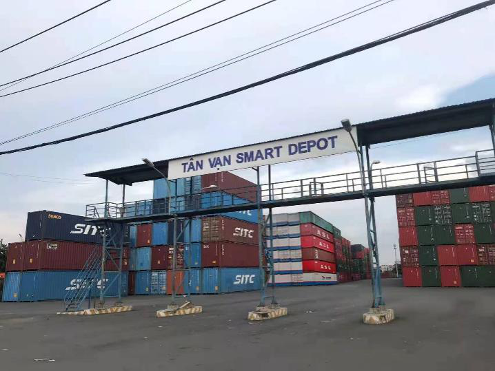 在越南胡志明市TAN VAN SMART堆場,鹽城港自備箱整齊擺放,一展風采。