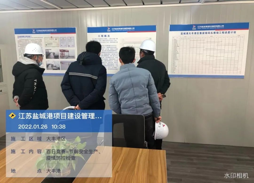 1月26日上午,項目公司分管安全領導及相關職能部門在大豐港區集裝箱堆場項目以及集中隔離點項目通過實地檢查、聽取匯報等方式開展風險隱患排查工作,重點檢查了臨時用電、腳手架搭設、冬季防火防凍、材料堆放、疫情防控等易存在安全隱患部位的安全管理與安全防護措施的落實情況。從檢查結果看,總體上各項目部對安全生產工作高度重視,安全生產責任制度落實、任務明確、措施得力。