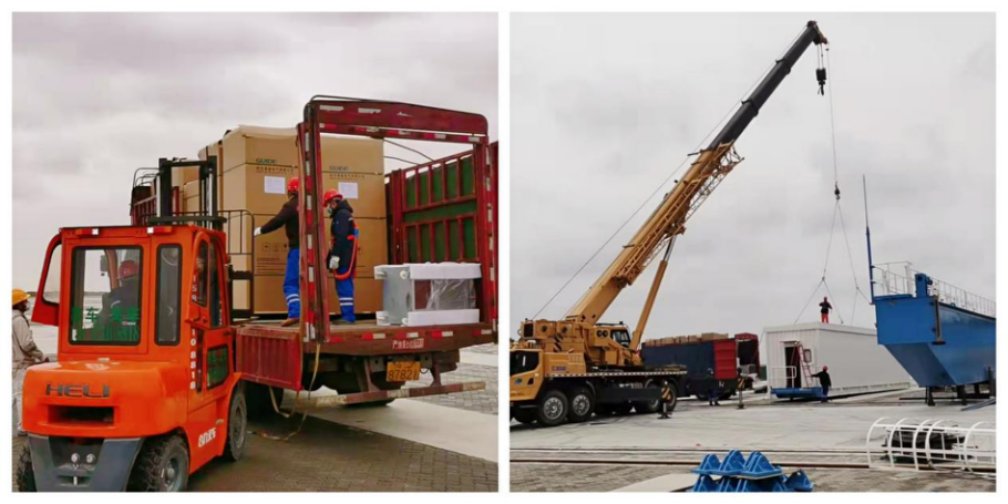 截至目前,重箱堆場、空箱堆場、熏蒸場地、港內(nèi)堆場等基層、面層已全部完成,道路與堆場工程量已完成約98%,邊檢樓沉樁完成144根,進、出港閘口基礎與主體柱已完成4根,變電所、進出港閘口、查驗平臺及監(jiān)管倉庫、維修保養(yǎng)車間、生活污水處理站等附屬設施土建方面工程量已完成約70%,1臺GJQ型41t-40m軌道式集裝箱門式起重機主體已吊裝完畢,即將進入調(diào)試階段。