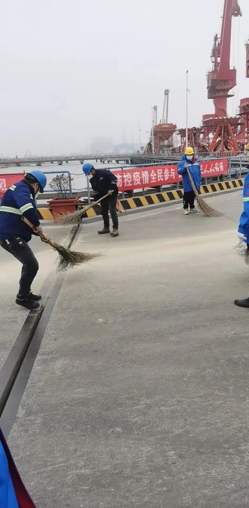本次環境治理演練以實戰模擬方式進行,在現場總指揮發出演練開始指令后,按照公司環境治理應急預案中環境治理突擊檢查事件處置方案,碼頭現場各級人員立即執行現場環境治理措施。各部門根據演練方案、各司其職、快速響應。生產部迅速組織人員安排分工,人員、機械立即進入分工區域進行打掃;倉儲部立刻啟動場地噴淋裝置、安排灑水車作業,確保廠區道路、場地、碼頭不起揚塵;市場部、技術部人員拿起掃帚、鐵鍬在分管區域進行清掃;安環部在現場開展巡查,及時調整人員對局部區域進行清掃。在所有人員的共同努力下,演練按照既定方案有序開展,達到了預期效果。