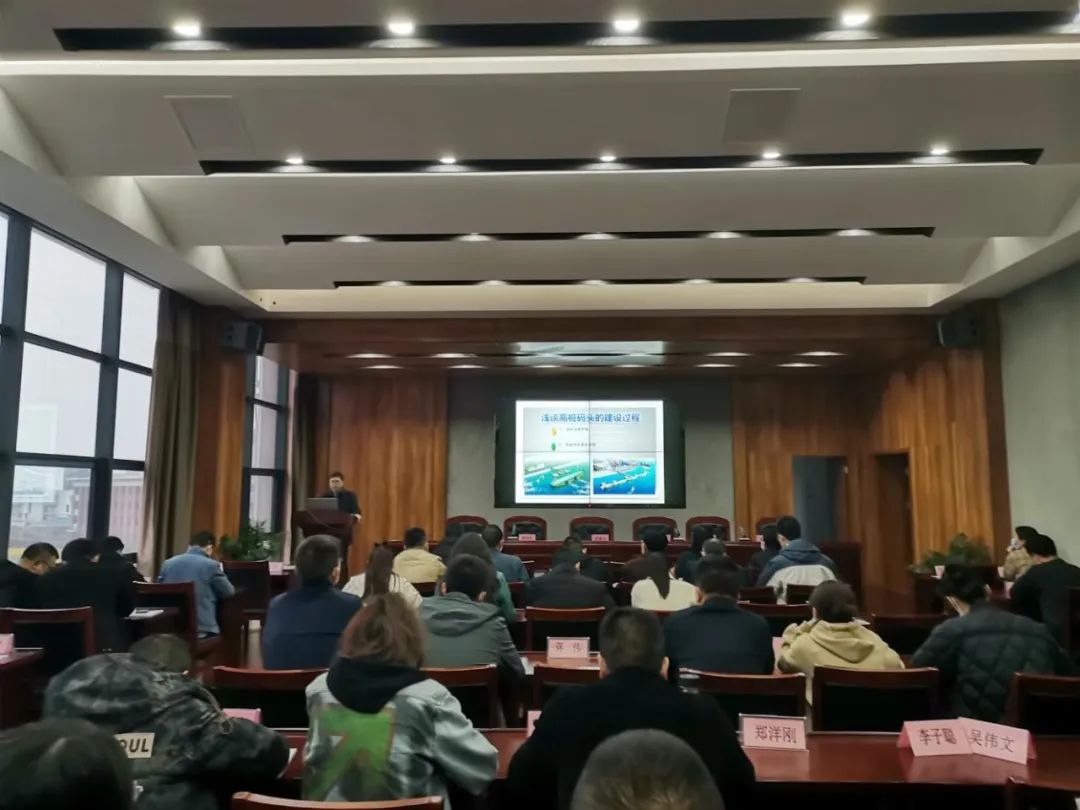 “業務大講堂”由港區相關負責同志進行主講,他以《淺談高樁碼頭建設過程》為題,結合響水港區小蟒牛作業區碼頭二期工程(4#、5#泊位)項目建設的實際情況,圍繞岸坡挖泥施工、灌注樁施工、水上沉樁施工、現澆樁帽施工、預制構件施工及安裝等方面內容,通過文字、圖片、視頻相結合的方式,深入淺出地為機關干部職工作了系統地講解,內容豐富,干貨滿滿。
