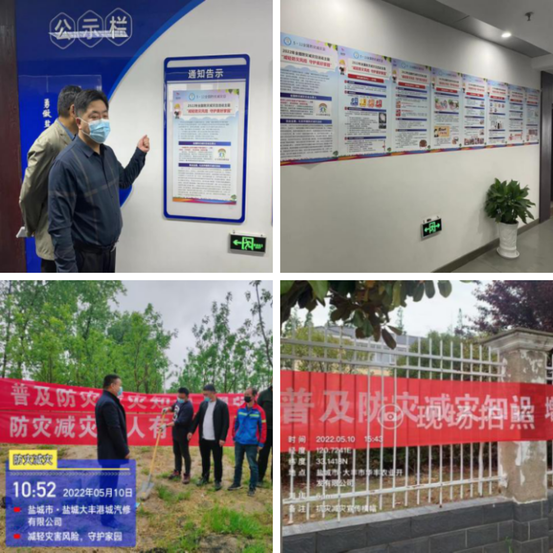 大豐港區及各子(控)公司通過張貼“2022年防災減災”主題宣傳海報、懸掛橫幅、微信群推送防災減災科普知識等方式,全面開展防災減災宣傳活動,營造濃厚的防災減災宣傳氛圍,同時組織人員對防災減災知識點進行講解,進一步增強員工安全意識,防災減災安全技能和素質。