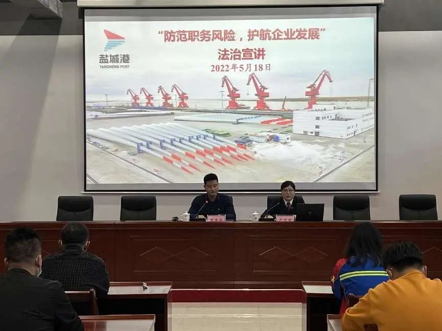 為進一步增強港區干部職工的法紀觀念和廉潔從政意識,提高防范風險能力,有效預防職務犯罪,5月18日上午,射陽港區法務部邀請射陽縣人民檢察院相關專家,為全體員工進行了《防范職務風險,護航企業發展》專題講座。嚴主任結合港口行業實際,從國有企業職務犯罪預防主體定位、國有企業職務犯罪罪名概述、國有企業職務犯罪案發原因分析、防范國有企業職務犯罪的對策及建議等四個方面進行詳細講解,讓所有員工接受了一次深刻的法治教育。