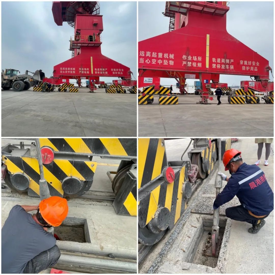 重件碼頭分公司組織開展門機作業故障排除應急演練。演練模擬門機作業在熟料入庫時,在入料斗時發現提升機處冒出大量黑色浮塵的場景。門機司機發現險情,報告于現場調度,一系列的故障排除措施有序開展,維修人員查找故障為較多大塊凝固體在提升機中導致無法作業,隨即清理障礙,重新啟動機器。此次應急演練,充分展現了作業人員在碼頭大型裝卸設備作業的安全應急能力以及后續影響處理能力。