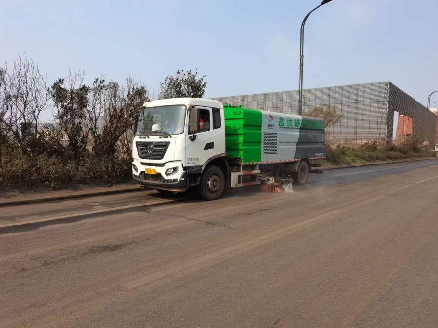 Hi!大家好。我是來自鹽城港港口公司的一臺環保洗掃車,別看我和普通環保車的外觀差不多,我的工作任務可和它們不一樣,我每天要對鹽城港大豐港區道路進行洗掃作業和防塵抑塵。我是清潔工作中的好幫手,每天都讓港區恢復煥然一新。
