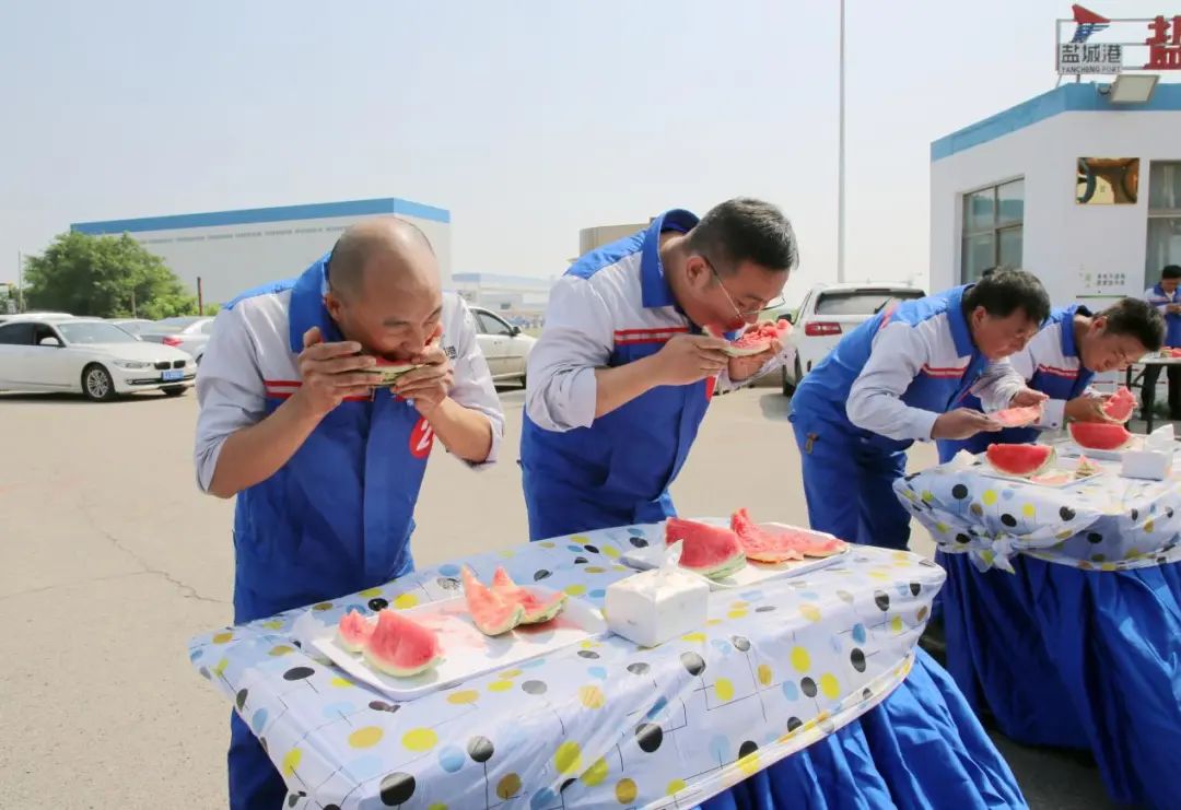 剛剛過去了小暑,大暑又匆忙到來,地表熱力值持續爆表,大豐港區一線職工不懼酷暑,堅守一線,與炎熱打上了一場持久戰。在這炎熱的酷暑時節,鹽城港大豐港區滿載著“一家人、在一起、手足情、過日子”的深情關愛,給一線的職工帶來了一場西瓜的狂歡之旅,在大豐港區石化碼頭舉行“瓜分甜蜜清涼一夏”吃西瓜比賽,和順國貿、中南匯、油品化工碼頭、成品油一線職工代表參賽。