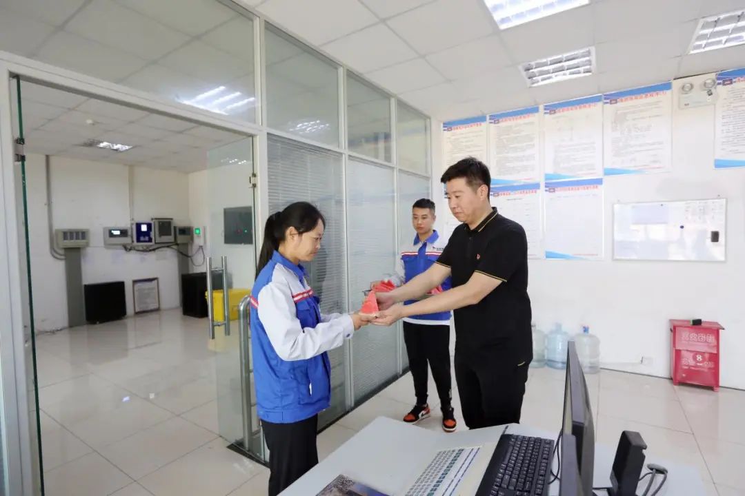 活動結束后,港區相關負責人將西瓜送至各單位一線在崗員工,為他們解暑降溫、鼓舞干勁。