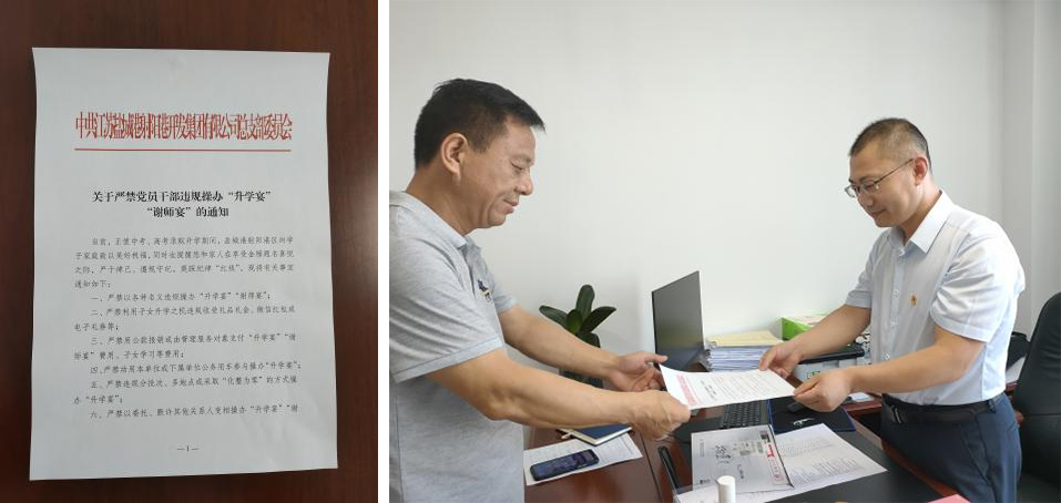 公司紀檢主動作為、靠前監督,進一步暢通信訪舉報渠道,公開舉報方式,及時收集處置群眾反映的問題線索。強化監督執紀問責,通過專項檢查、明查暗訪等方式,加大對違規操辦、參加“升學宴”“謝師宴”等違紀違規問題的監督檢查力度,對有令不行、有禁不止的頂風違紀行為,發現一起查處一起,絕不姑息,對典型案例一律通報曝光,做到以案明紀、形成震懾。同時,嚴格落實“一案雙查”制度,對頂風違紀造成不良影響的,既追究當事人責任,也追究相關負責人責任。