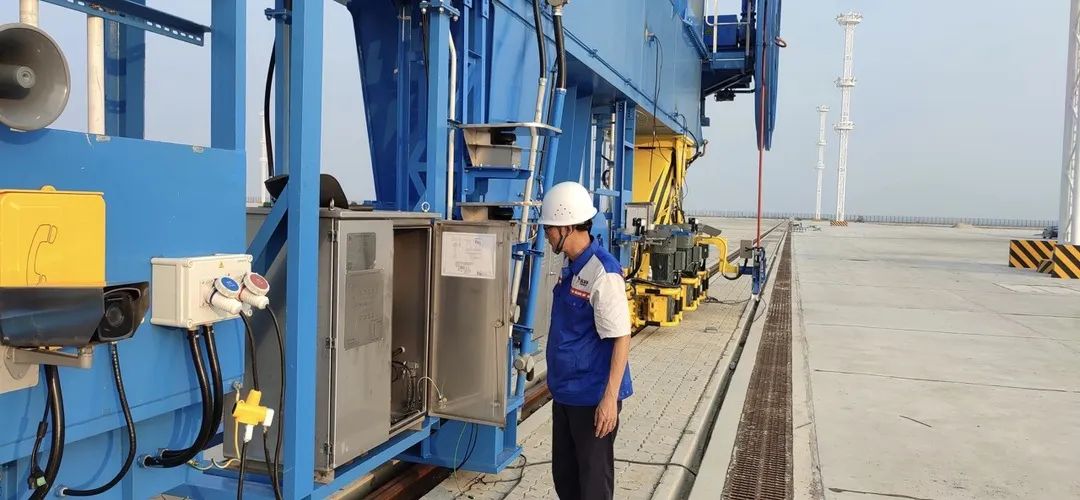 為強化項目管理,積極研究、建立風(fēng)控管理體系,他敢為人先,在信息化、數(shù)字化、智能化的發(fā)展道路上不斷探究。他曾說“深入一線才是做好管理的重中之重”。進入夏季以來,當(dāng)氣溫升至38度左右時,軌道吊表面的溫度也遠超60度,他身先士卒,帶領(lǐng)一線員工數(shù)次登高在滾燙的鋼結(jié)構(gòu)件表面安裝、調(diào)試自動化設(shè)備,仔細摸排,現(xiàn)場指導(dǎo)、現(xiàn)場動手,從技術(shù)層面為項目提供可靠的支撐。