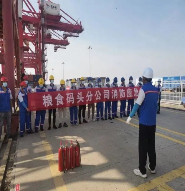 高溫?zé)崂顺掷m(xù),碼頭一線職工頭頂烈日、揮汗如雨、堅(jiān)守崗位,經(jīng)受著高溫的“烤”驗(yàn),同時(shí),高溫也使得碼頭作業(yè)現(xiàn)場(chǎng)的火災(zāi)風(fēng)險(xiǎn)驟增,消防安全也面臨著更大壓力。為確保“三管三必須”安全生產(chǎn)工作落實(shí)落地,防患于未燃,近日,港口公司糧食碼頭分公司舉行了消防演練。