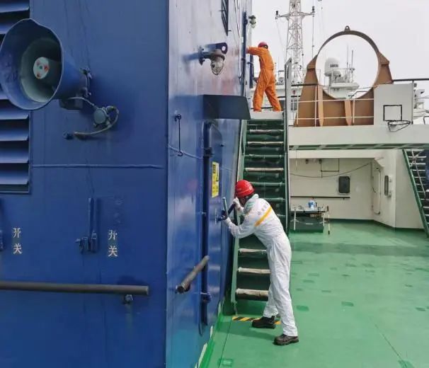 此次綜合應急演練活動分為消防演習和溢油演習兩個科目展開。首先進行的是消防演習,隨著演習總指揮的一聲令下,消防演習正式開始。隨著現場火災警報拉響,船長立即啟動消防應急程序并通過廣播通知船員失火部位,同時向灌河海事處匯報火災情況,灌河海事處隨即派遣正在灌河巡邏的“海巡06117”艇,靠前進行警戒指揮。“新海鯉”船員通過采用便攜式滅火器,啟動船上固定二氧化碳滅火系統,成功撲滅明火。