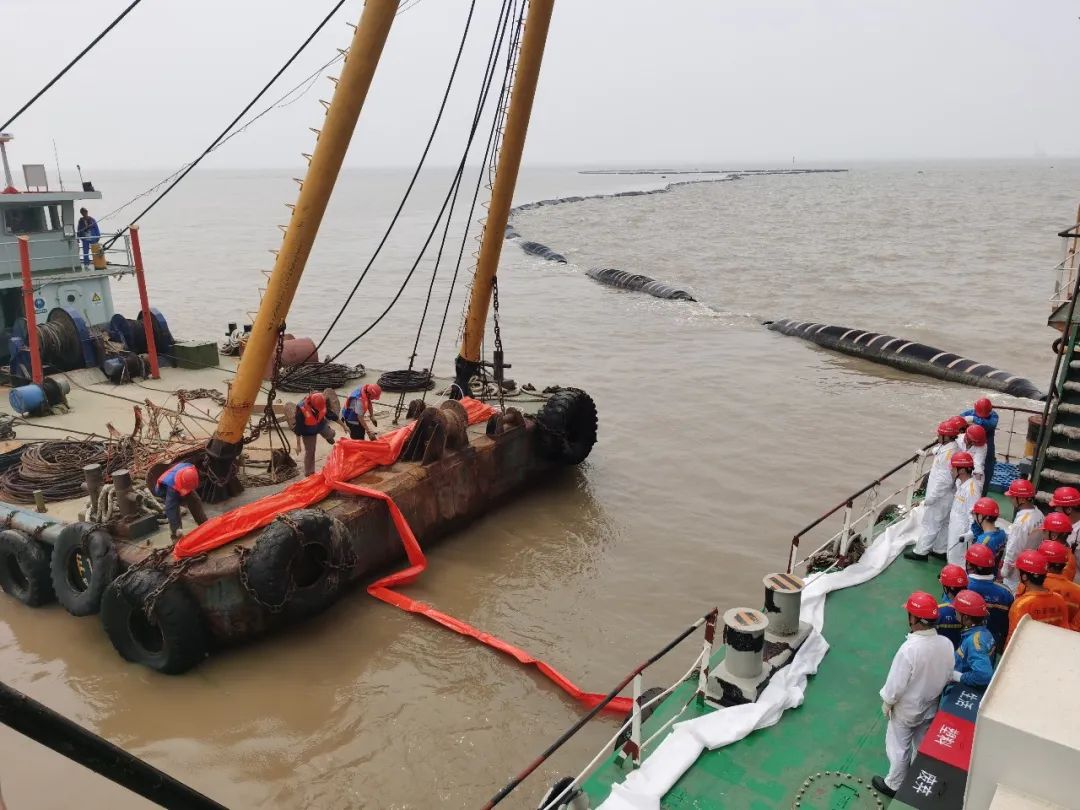 為保障灌河口5萬噸級航道整治工程航道疏浚施工安全,預防各類突發事件發生,提升疏浚船舶突發事件處置能力。8月19日,項目管理公司組織開展船岸綜合應急演練活動,響水港區、灌河海事處共同參與。