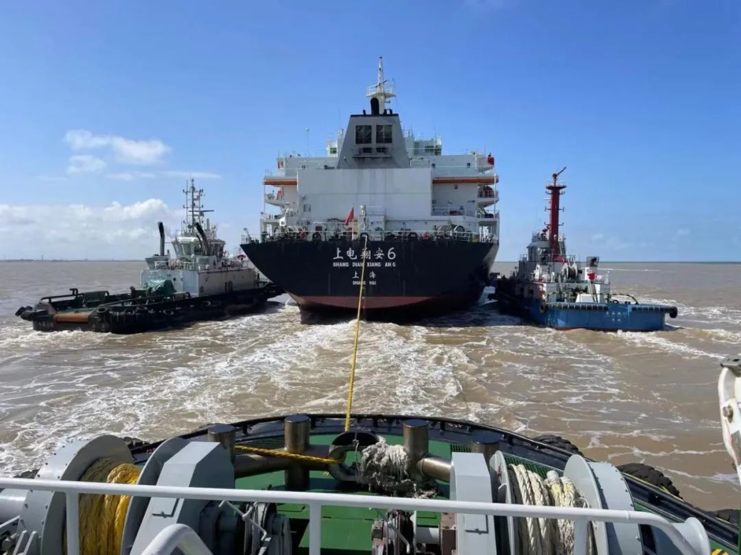 中午12時(shí),在引航員的指揮下,現(xiàn)場(chǎng)拖輪步調(diào)一致,統(tǒng)一行動(dòng)。在靠離泊過(guò)程中,持續(xù)加強(qiáng)海事、引航、拖輪、碼頭、船舶五方協(xié)同聯(lián)動(dòng),不斷調(diào)整角度和拖力,歷經(jīng)3個(gè)小時(shí)的努力,圓滿完成了200米船舶的靠離泊等多項(xiàng)任務(wù)。