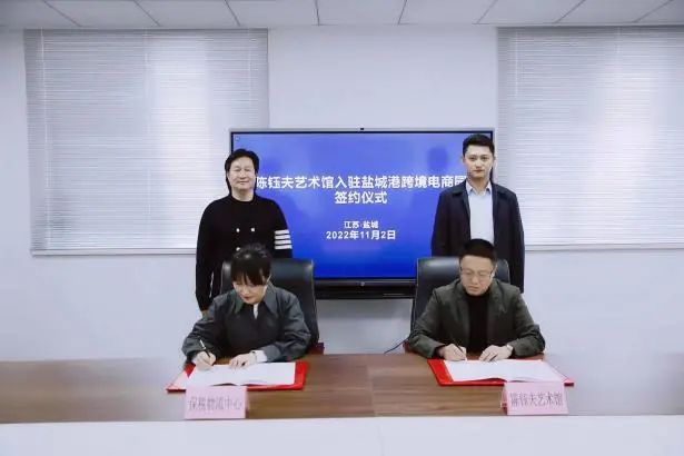11月2日,陳鈺夫藝術館與江蘇鹽城港跨境電商有限公司合作簽約儀式成功舉行??缇畴娚坦鞠嚓P負責人參加活動并簽約。