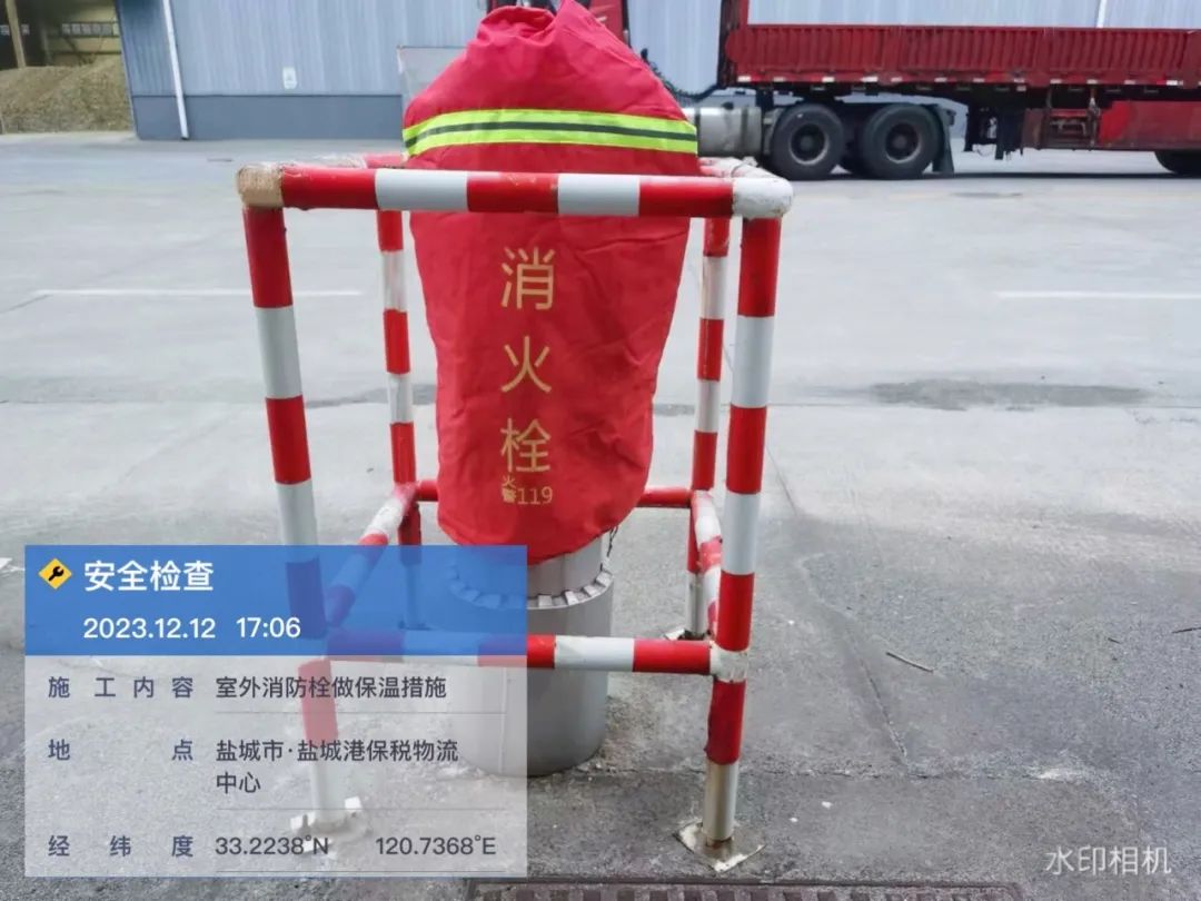 保稅物流中心堅持“抓早、抓緊、抓實、抓細”的原則對公司區(qū)域內(nèi)消防管網(wǎng)開展冬季防凍維保工作。主要是對庫區(qū)室外消火栓、消防管網(wǎng)加裝防凍保溫措施,防止消防管道因極寒天氣發(fā)生冰凍、破裂,并進一步強化消防系統(tǒng)巡查,切實做到每臺設(shè)備有人管,每條管線有人查,確保各消防設(shè)備安全平穩(wěn)過冬。