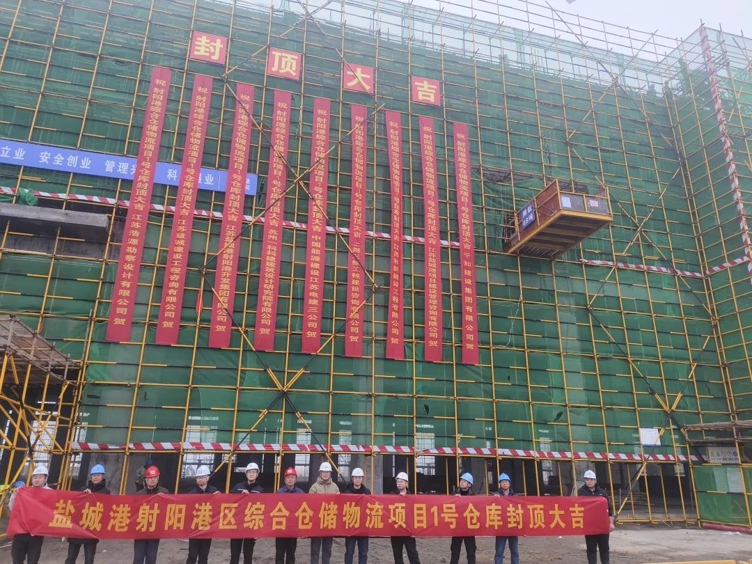 近日,隨著屋面最后一方混凝土澆筑完成,鹽城港射陽港區綜合倉儲物流項目1#倉庫主體結構順利封頂,1#倉庫全面轉入砌體和裝修階段。