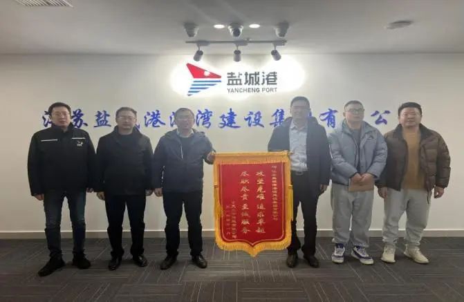 工作船安保碼頭港池疏浚實施期間,正值寒潮來臨,大風大浪頻發(fā),施工船舶頻繁避風,碼頭船舶貨物裝卸作業(yè)緊迫。港灣建設集團港航分公司面對此困境,迎難而上,大力發(fā)揚“不怕困難、不畏艱險、勇于斗爭、敢于勝利”的精神,成立手續(xù)辦理組和項目實施組,聯(lián)動協(xié)作,積極與碼頭總調(diào)及海事部門保持溝通,加強24小時值班值守,時刻關注氣象海況、船舶動態(tài),最終按時保質(zhì)完成港池疏浚作業(yè),高效的作業(yè)效率得到了靠船企業(yè)的高度認可,并贈送一面寫著“攻堅克難、追求卓越,盡職盡責、至誠服務”的錦旗。