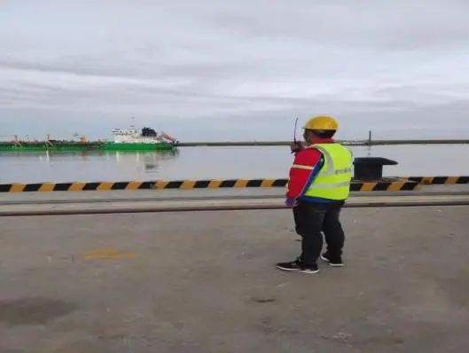 船舶輕輕靠岸,駐船調度員作為連接港方與船方的重要橋梁一如既往堅守在碼頭作業生產的第一線組織、協調、溝通、監督現場的作業環節,全力確保‘一靠一離’制度落地見效。