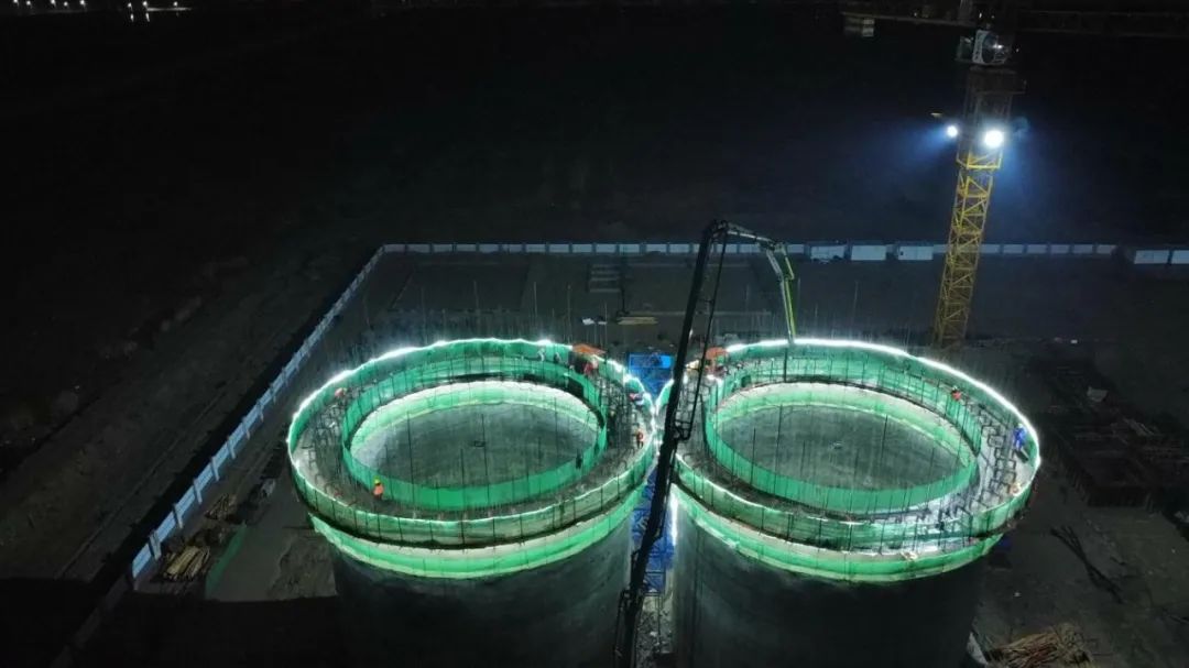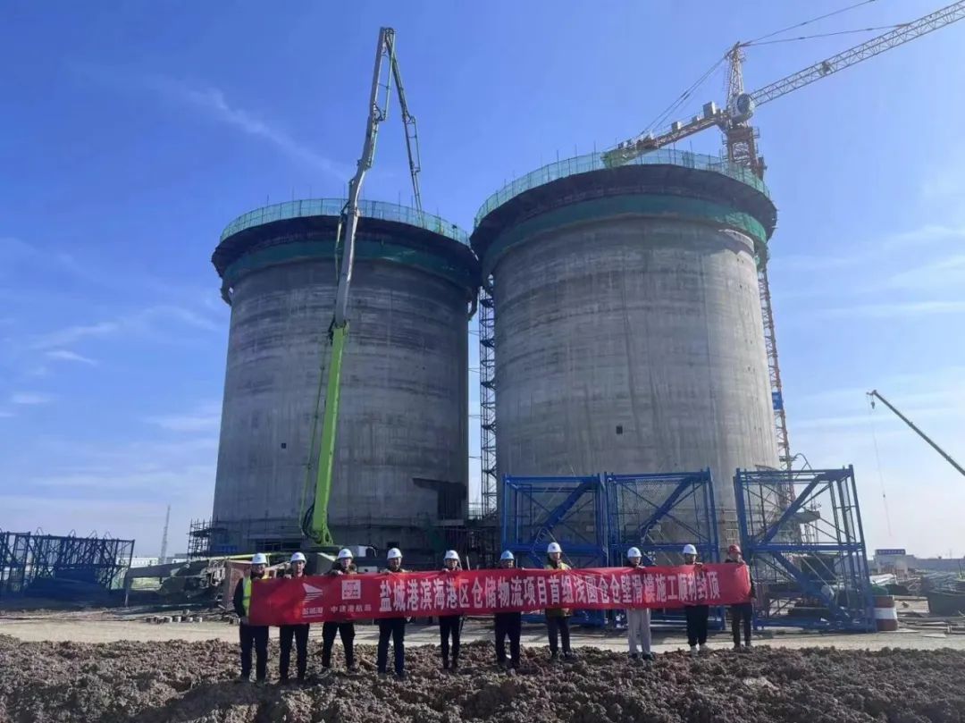 近日,濱海港區倉儲物流項目首組淺圓倉倉壁順利封頂。