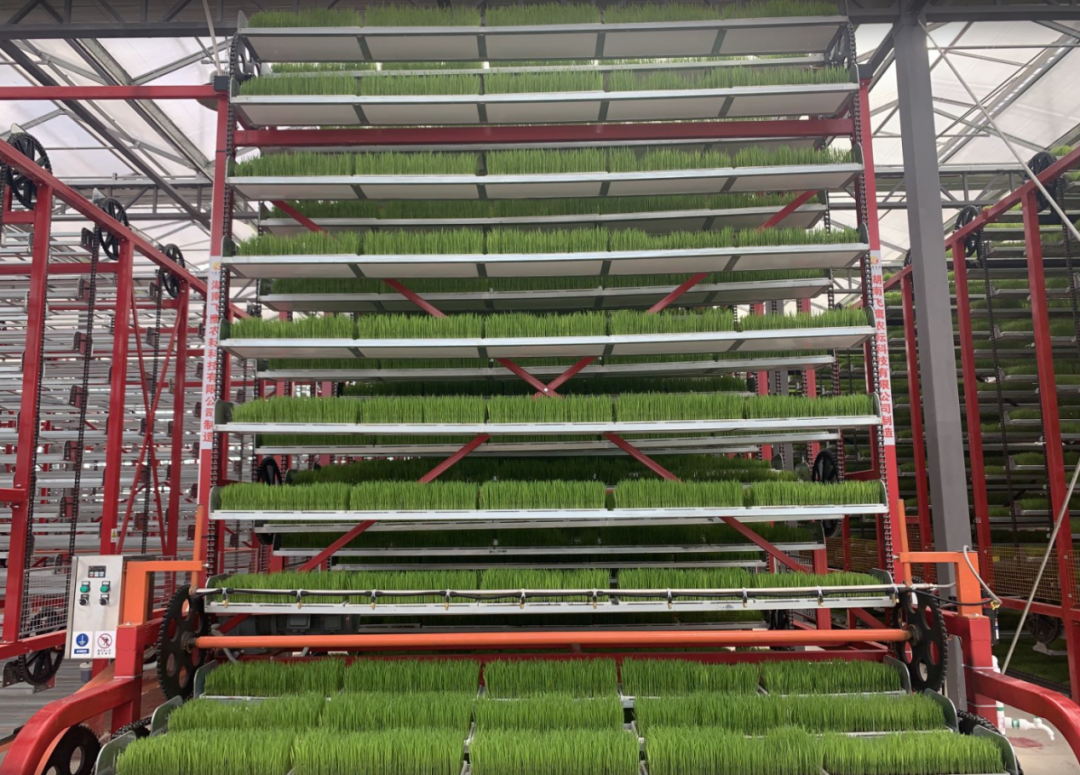 在智能化育秧生產車間,16臺嶄新的大型智能化育秧機正在開足馬力,抓緊時間培育今年首批常規稻秧苗,層層疊疊的育秧盤內,綠油油的秧苗正茁壯成長。隨著齒輪轉動,育秧盤隨著自動滑軌上下循環,育秧床上裝有光照傳感器、二氧化碳傳感器等設備,可實現調溫、調濕、補水、增光完全自動化、智能化,一次性可育苗600多畝。這種培育方式,不僅能節約土地、種子、肥料和人工成本,還可縮短育秧周期,保證預期移栽時間,為后期機械化插秧和田間管理奠定堅實基礎,跑出水稻提質增產“加速度”。