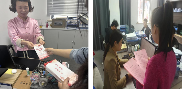 制作發(fā)放民法典知識內(nèi)容宣傳單及民法典普法宣傳冊,組織全體人員利用晨會時間加強(qiáng)學(xué)習(xí),并在跨境電商園區(qū)向來往園區(qū)客人發(fā)放宣傳單,以此增強(qiáng)大家學(xué)法、懂法、用法意識,合力營造良好法治氛圍。