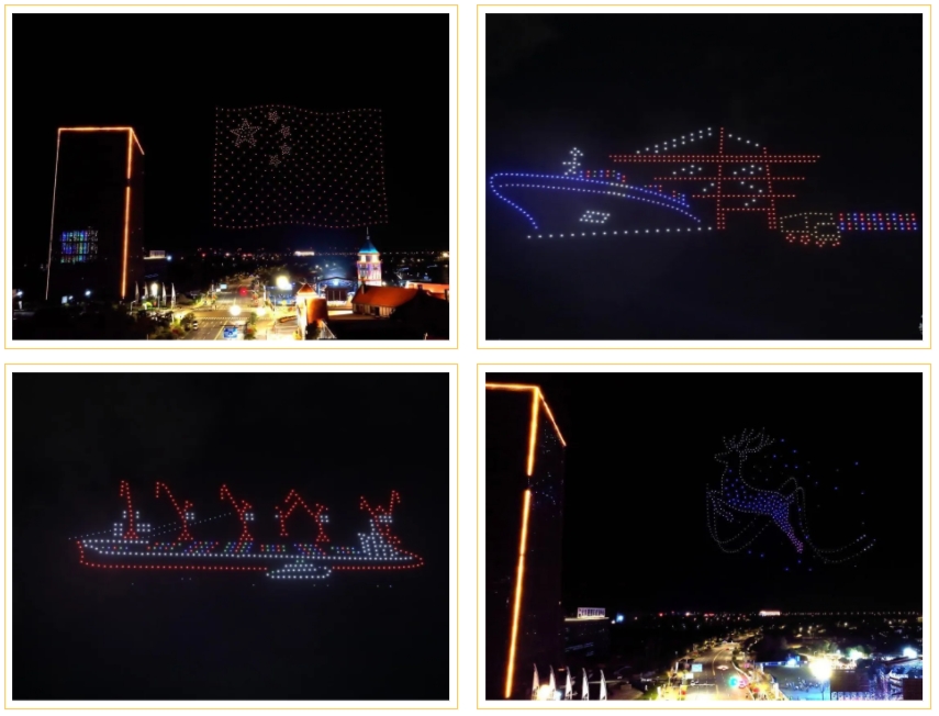 夜幕徐徐降臨,500架無(wú)人機(jī)同時(shí)升空,一場(chǎng)主題慶祝新中國(guó)成立75周年的無(wú)人機(jī)燈光秀正式開(kāi)演。借用科技編程語(yǔ)言,敘述著鹽城從過(guò)去到未來(lái)的輝煌巨變,時(shí)而變化成濕地精靈,時(shí)而演變成現(xiàn)代大港,時(shí)而匯聚成鮮艷的五星紅旗,這不僅是一場(chǎng)視覺(jué)的盛宴,更是對(duì)新中國(guó)成立75周年的深情祝福。精彩的表演引得來(lái)自周邊的游客情不自禁地拿起相機(jī),定格眼前的美好。